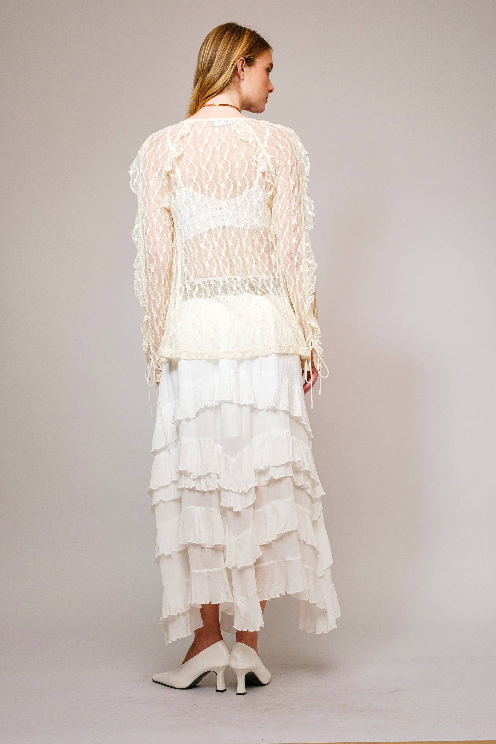 Turn heads in this flowy maxi dress with a smocked waist, tiered frill, and ruffle details. Perfect for any occasion, from casual to special. Embrace your playful side with this quirky, yet stylish piece. Get ready to receive compliments!