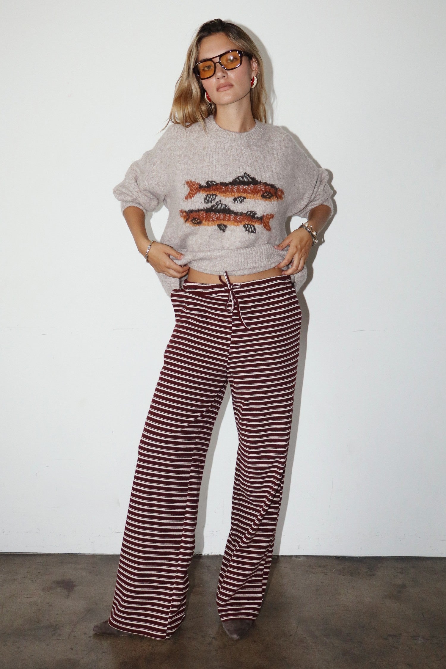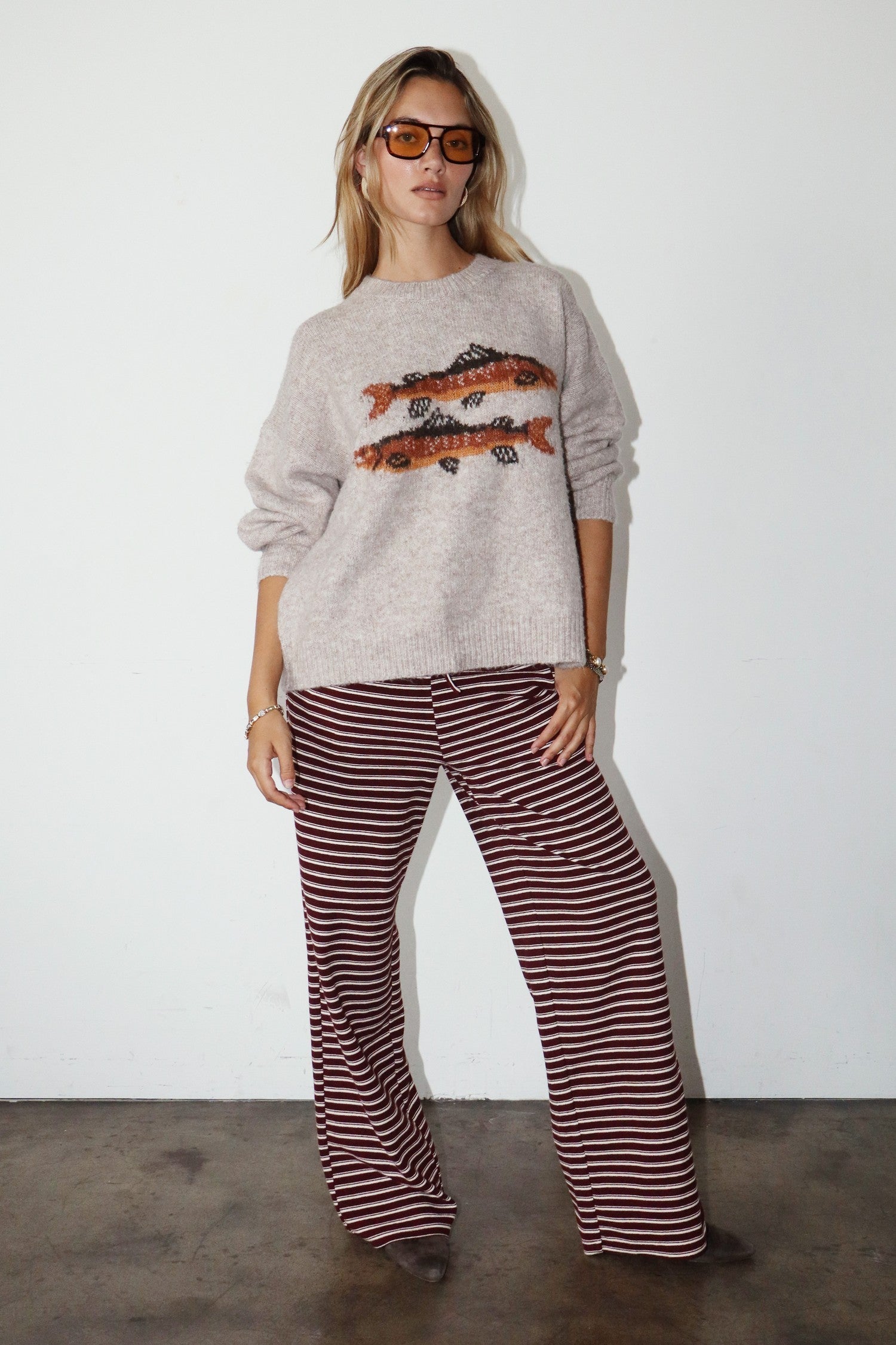 Hook, line, and sinker—The Reel Catch is the cozy statement sweater you didn't know you needed. Featuring a playful trout graphic on a soft, neutral knit, this sweater brings a touch of whimsy to your ranch-to-town wardrobe.